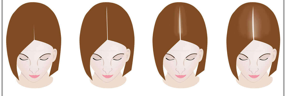 Tóc của phụ nữ bắt đầu mỏng dần theo đường ngôi để lộ da đầu cho đến khi mãn kinh.