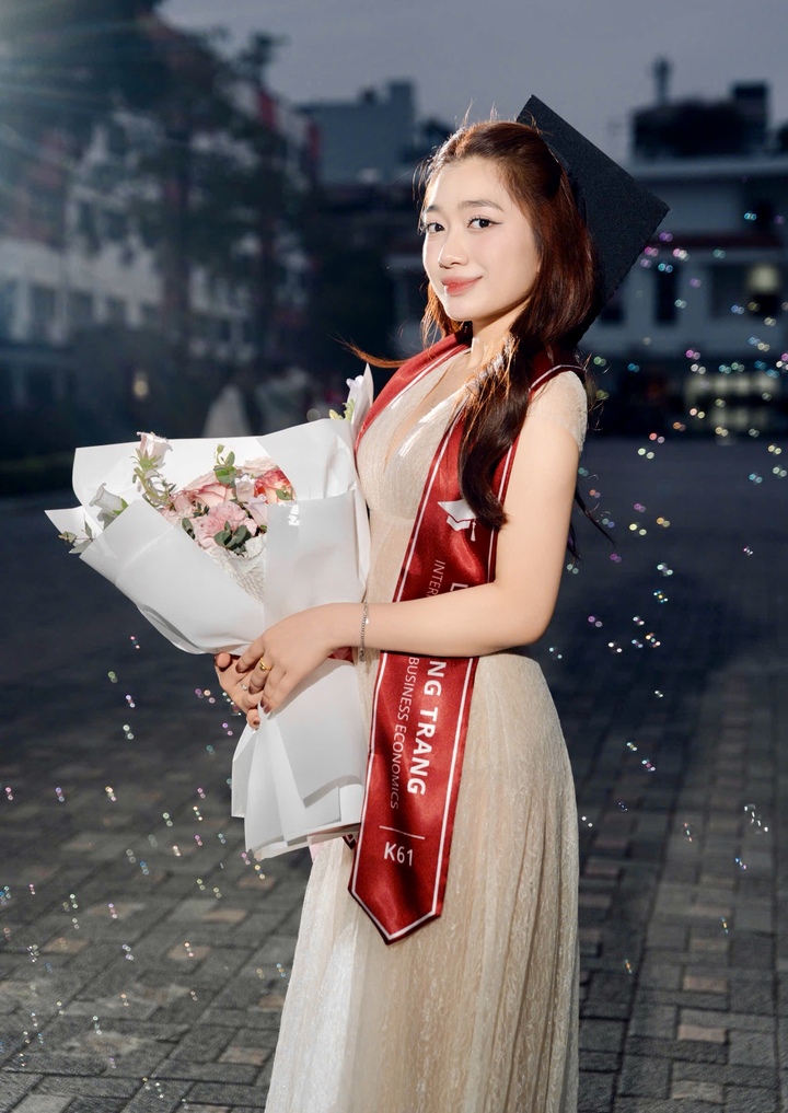 Trong đợt tốt nghiệp năm nay của Trường Đại học Ngoại thương, Lê Hoàng Trang (SN 2004) là một trong những gương mặt tân cử nhân nổi bật của khóa. Nữ lớp trưởng lớp Anh 10 – Kinh tế đối ngoại K61, trường Đại học Ngoại thương vừa tốt nghiệp loại xuất sắc với GPA 3.85/4.0.