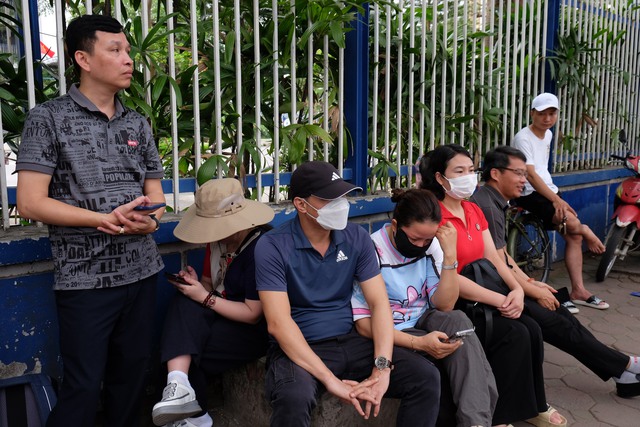 Nhiều phụ huynh nán lại cổng trường sau khi con đã vào trường thi
