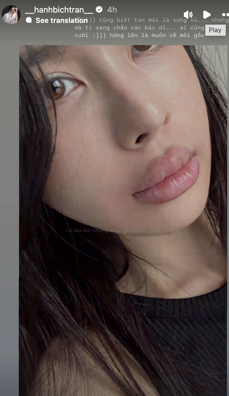 Bích Hạnh không ngại công khai ảnh mặt mộc, môi sưng vù khi tiêm tan môi