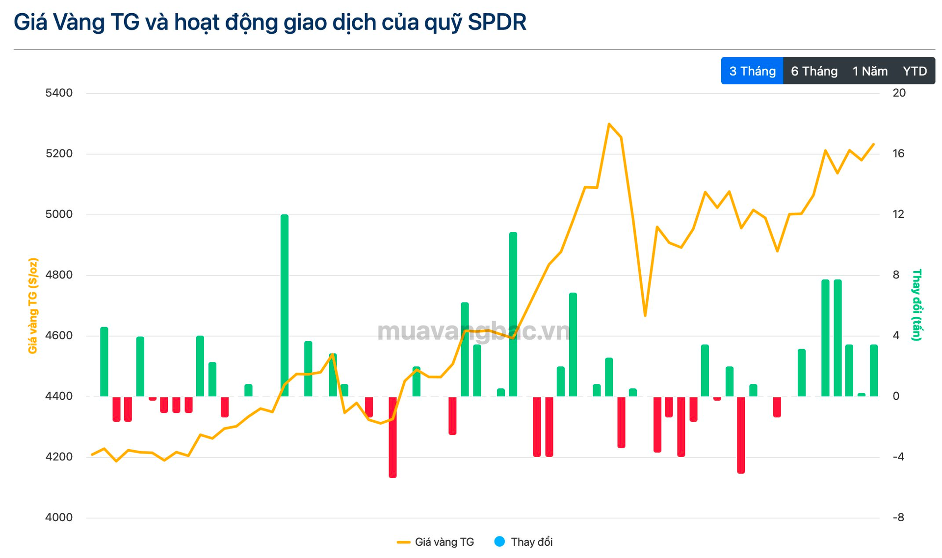 Động thái mua mạnh tay của SPDR tuần qua cũng là một trong những yếu tố góp phần thúc đẩy giá vàng hồi phục lên gần 5.300 USD/oz, cao nhất trong vòng 1 tháng. Đà tăng đưa giá vàng gần lấy lại những gì đã mất trong cú rơi hồi cuối tháng 1. So với mức cao nhất lịch sử từng chạm đến (trên 5.600 USD/oz), giá vàng còn thấp hơn khoảng 6%.