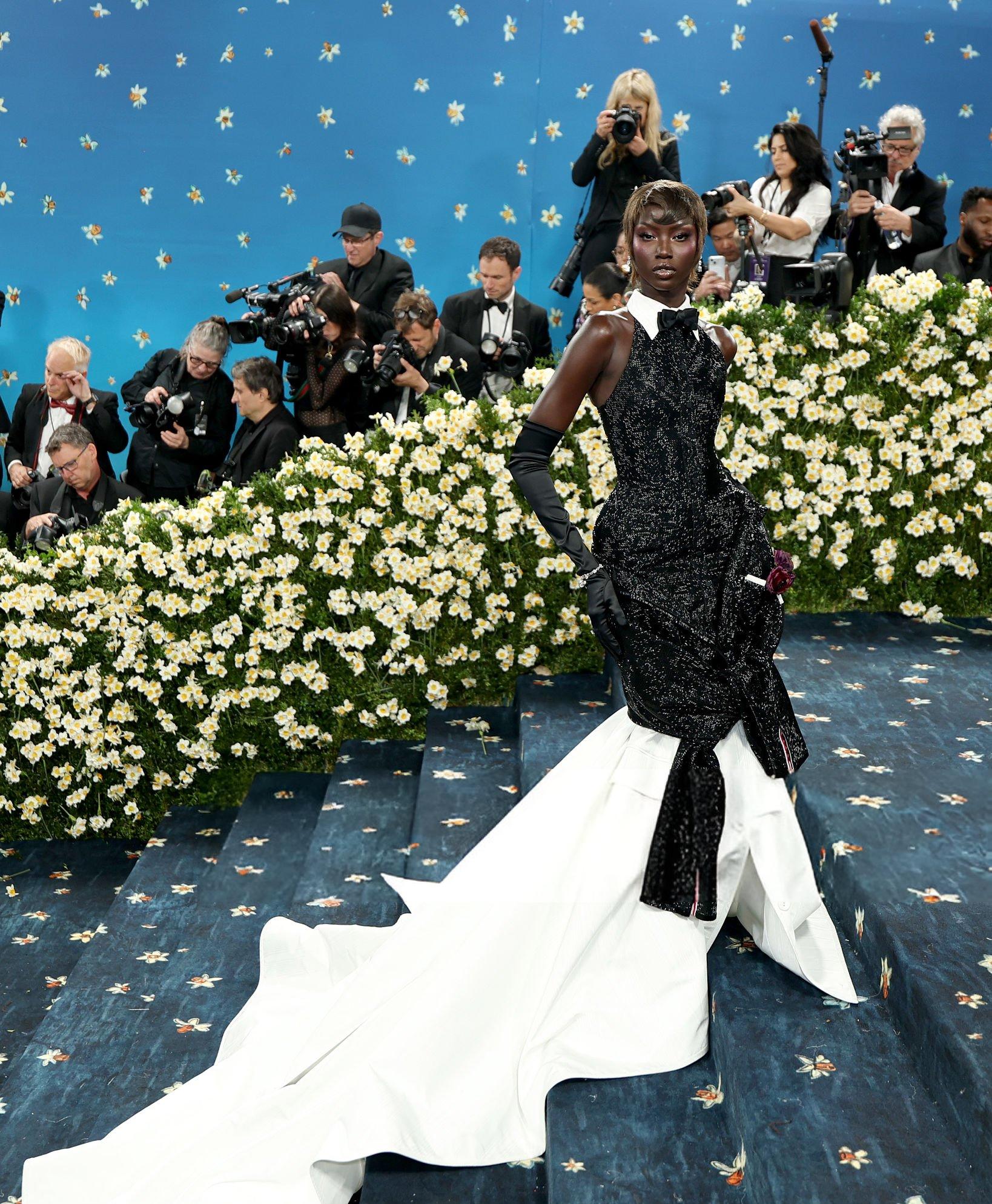 Với Met Gala 2025, Anok Yai xuất hiện đầy quyến rũ, sang trọng trong mẫu váy được đính kết 98.000 viên đá quý lấp lánh của Swarovski.