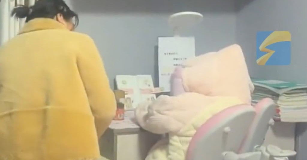 Bé gái sống tại thành phố Dương Châu (tỉnh Giang Tô, Trung Quốc) được người mẹ chia sẻ lên mạng xã hội vào ngày 8/2 cũng vậy. Người mẹ lên phòng, vẻ mặt tươi cười đầy yêu thương, chắc mẩm con đang yên ắng học bài nhưng ngờ đâu khi kéo chiếc áo khoác màu vàng ra thì ngỡ ngàng bật ngửa. Đằng sau áo là… búp bê đội mũ và ngồi ngay ngắn tại bàn “học tập” như thể đó là người thật, trong khi cô con gái chơi đùa gần đó. Nếu nhìn sơ sơ thì không thể phát hiện điều bất thường, trừ khi phụ huynh tới nơi bắt tận tay.