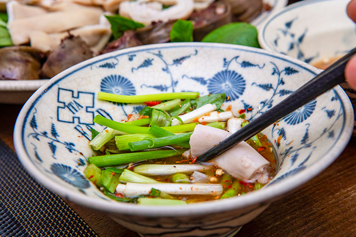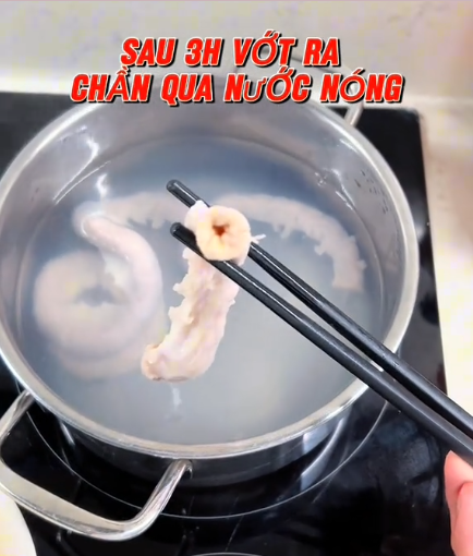 Người khác thì viết: “Ngâm lòng với hỗn hợp phèn chua + hàn the, đảm bảo miếng lòng trắng, giòn, dai y như thật”.