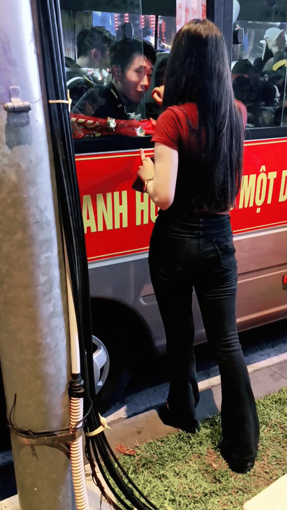 Người dưới xe kiên nhẫn đứng nghe, người trên xe hăng say kể chuyện sau buổi tổng hợp luyện. Không biết bao nhiêu yêu thương trong khung này! (Nguồn: @mintri.day)