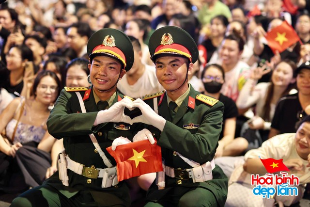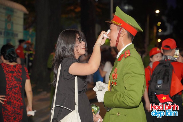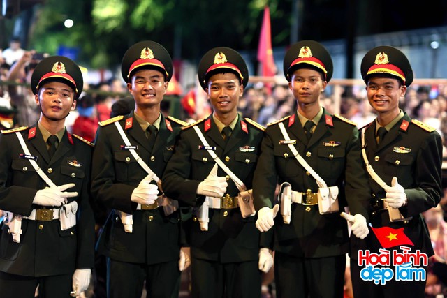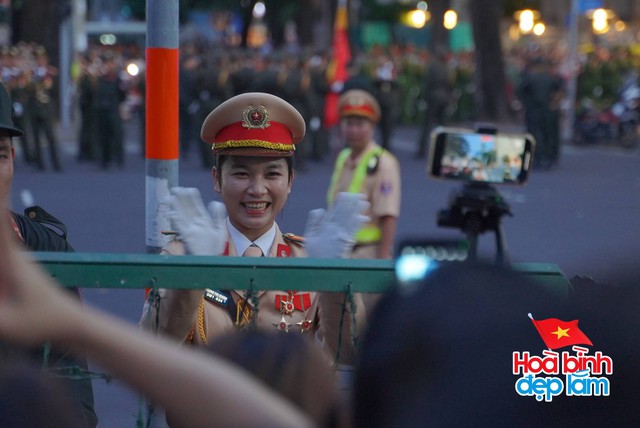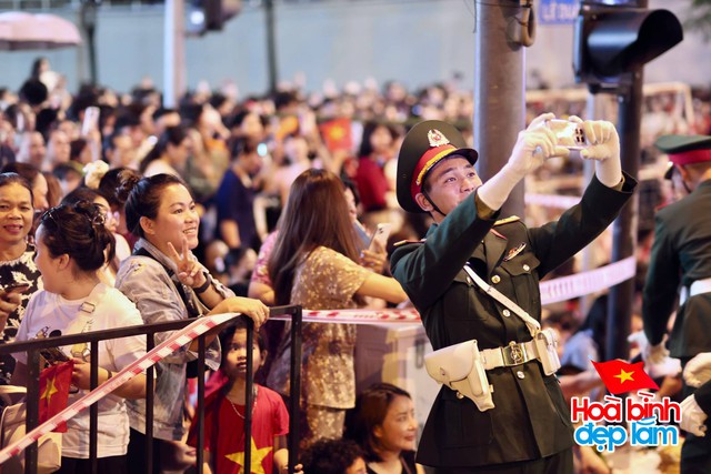 Ngay trước giờ tổng hợp luyện diễu binh, diễu hành lần 2 diễn ra, các chiến sĩ cùng người dân đã có thời gian ngắn tương tác cùng nhau (Ảnh: Nghĩa Lê)