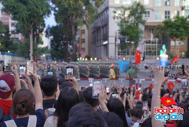 Người dân không khỏi háo hức giơ cao điện thoại ghi lại những khoảnh khắc trong ngày tổng hợp luyện diễu binh, diễu hành lần 2 (Ảnh: Nghĩa Lê)