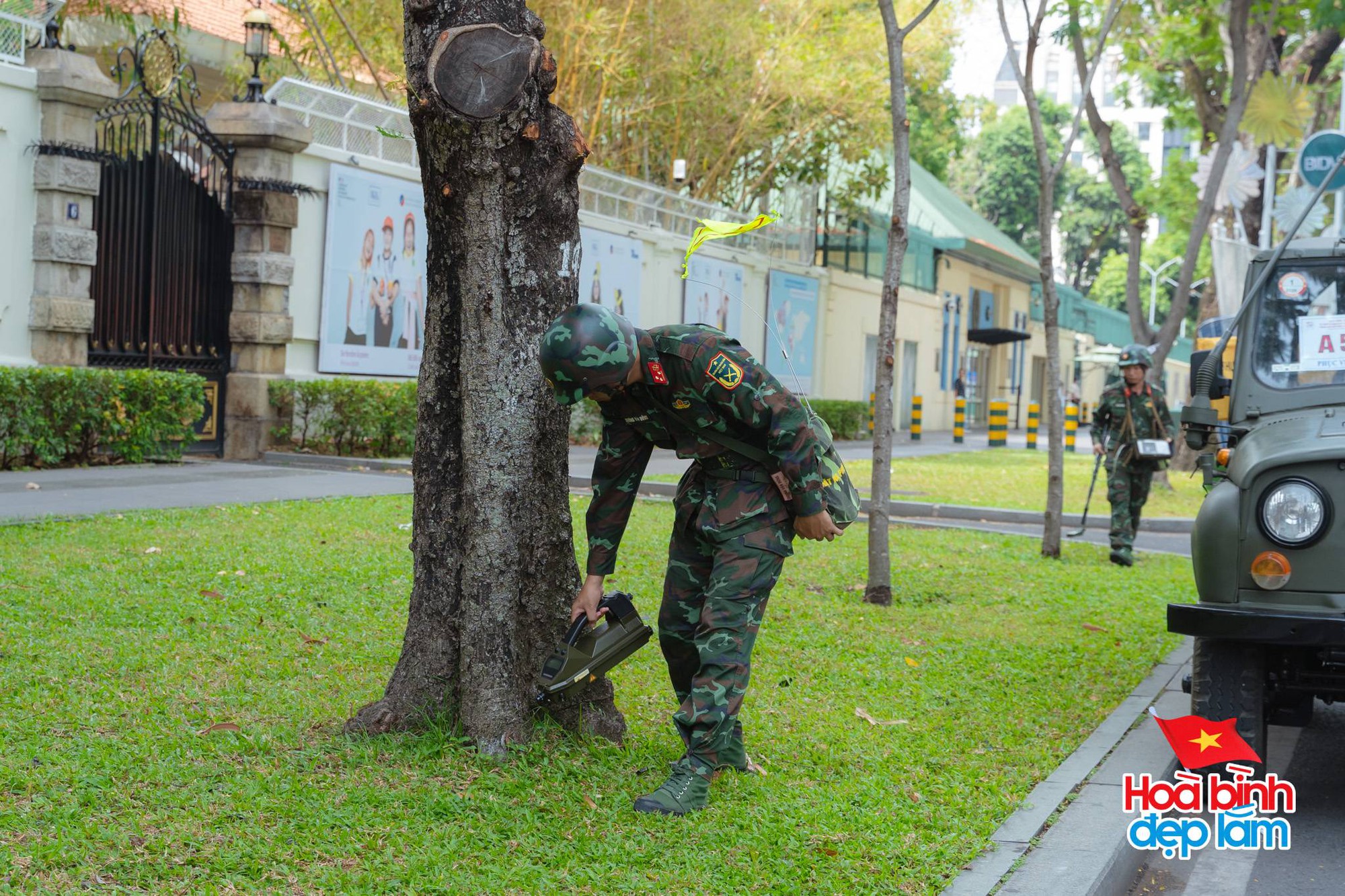 Lực lượng chức năng kiểm tra an ninh trên Lê Duẩn (Ảnh: Nghĩa Lê)