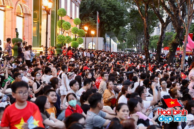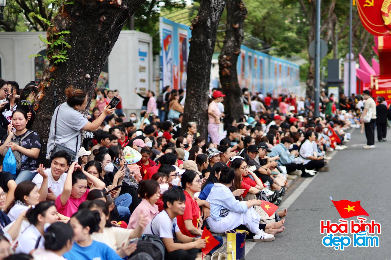 Người dân phủ đỏ 2 bên đường (Ảnh: Viết Thanh)
