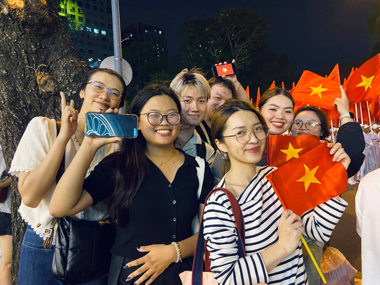 “Nhóm em ra đây từ lúc 17h30, tại nghĩ hôm nay sẽ rất đông nên tranh thủ vừa tan làm là nhóm em ra đây luôn, bình thường là 18h mới tan làm nhưng nay xin về sớm. Được tận mắt nhìn thấy các anh các chị trong nhóm diễu binh thì thật sự là đã mắt. Thời gian qua mọi người đã luyện tập rất vất vả.