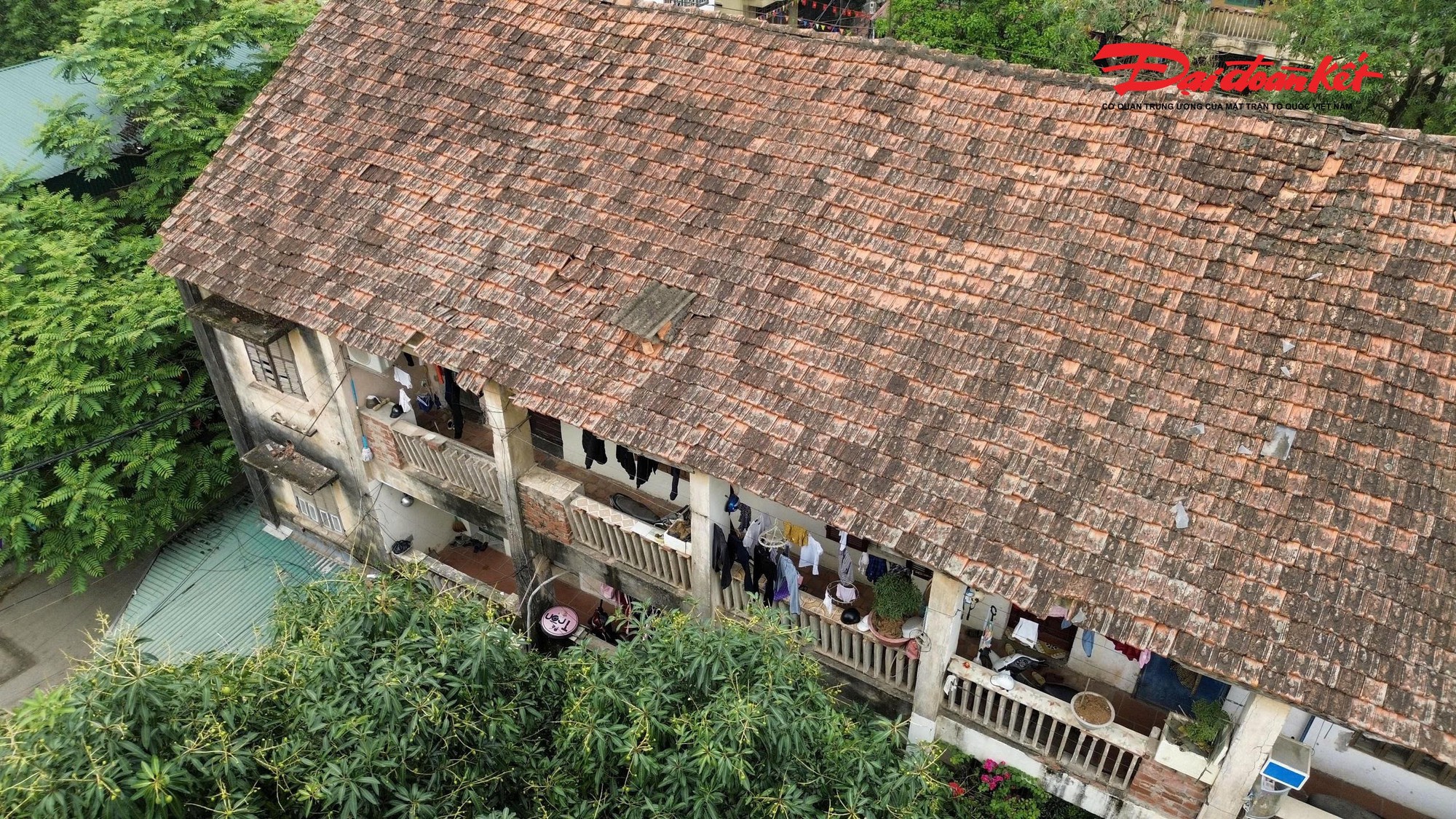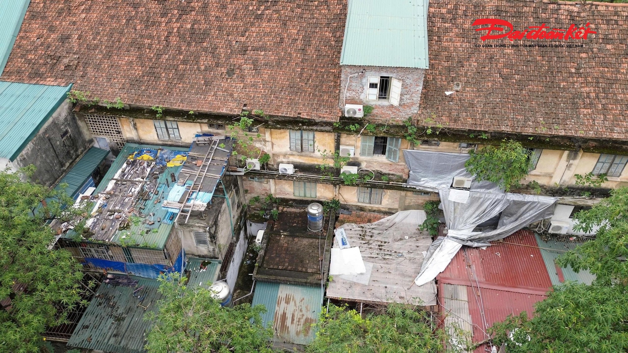 Mái nhà lợp ngói đã xuống cấp, trần khu vực hành lang nhiều vị trí bị hư hỏng, các hộ dân buộc phải tự sửa chữa, gia cố tạm bằng những tấm tôn để đảm bảo an toàn.