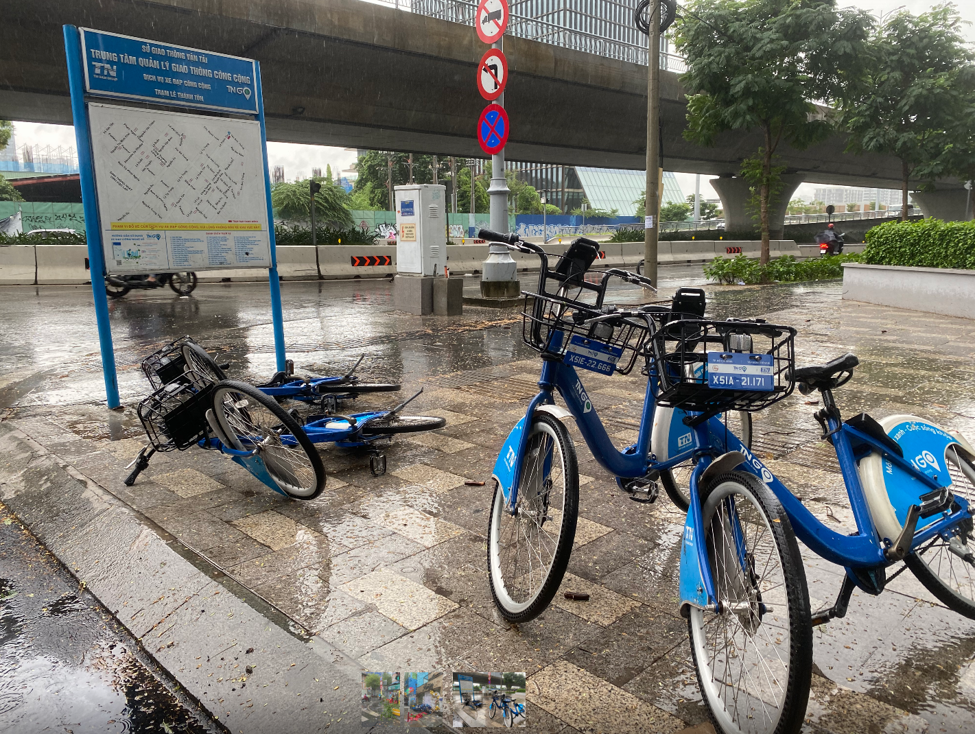 Xe đạp và nhiều đồ vật bị hất đổ bên đường. Ảnh: Viết Thanh