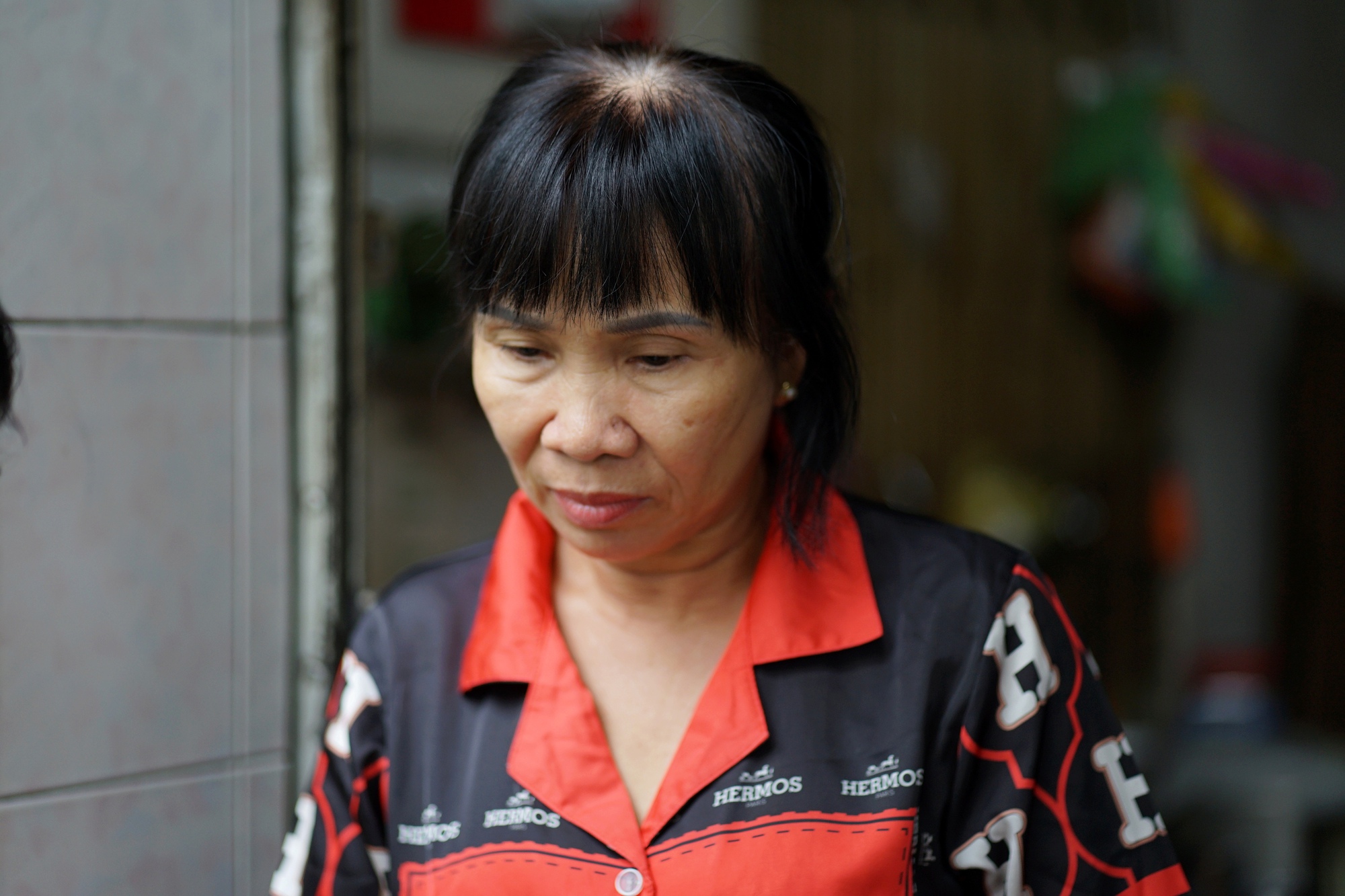 Bà Lan chia sẻ về khoảnh khắc nhánh cây rơi đổ xuống ngay trước cửa nhà. Ảnh: Di Anh