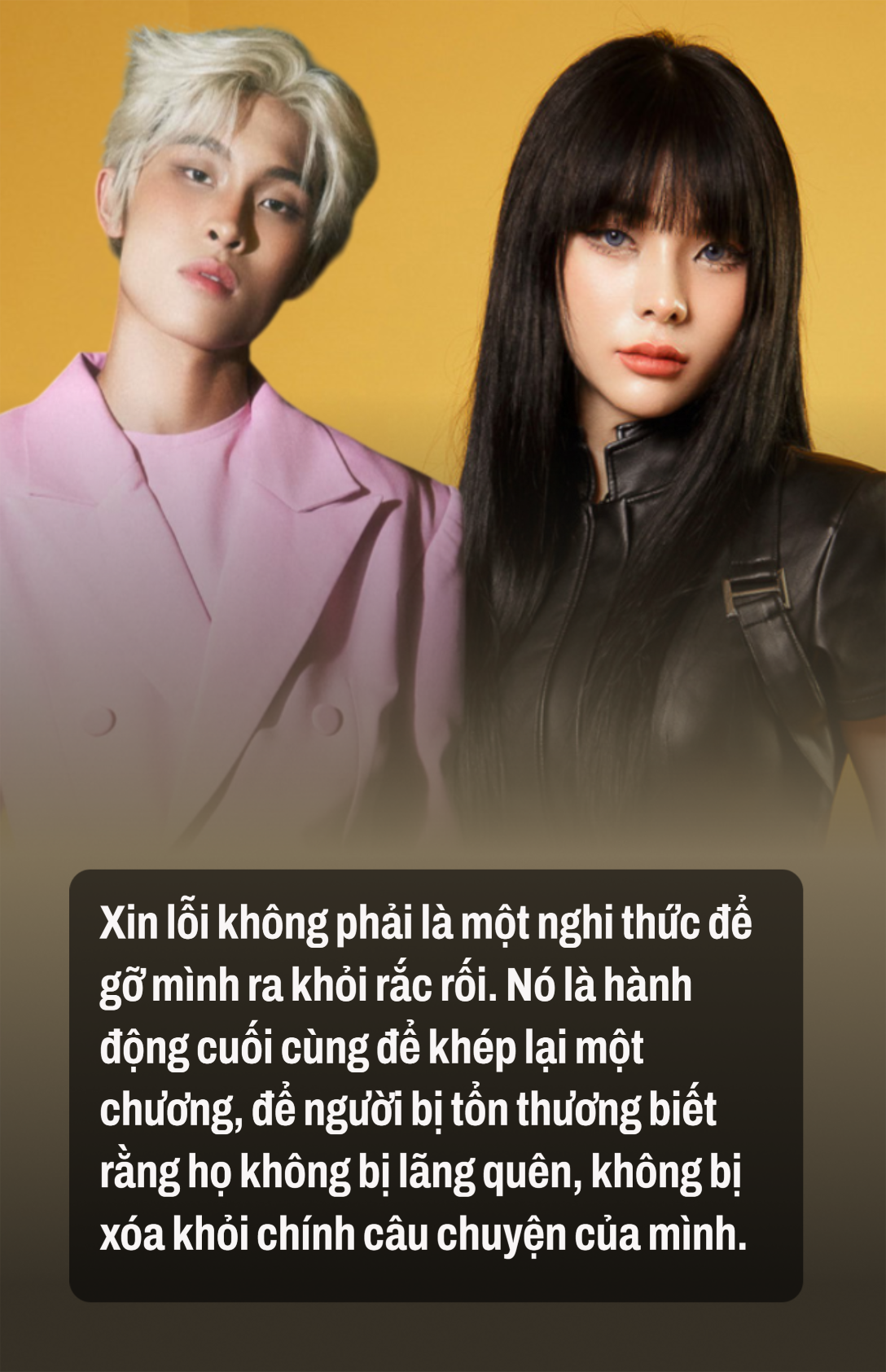 Có những lời xin lỗi không được nói ra để người kia nghe – mà chỉ để cho khán giả thấy. Không nhắm đến trái tim, mà nhắm đến dư luận. Không vì muốn hàn gắn, mà vì muốn kết thúc nhanh gọn.