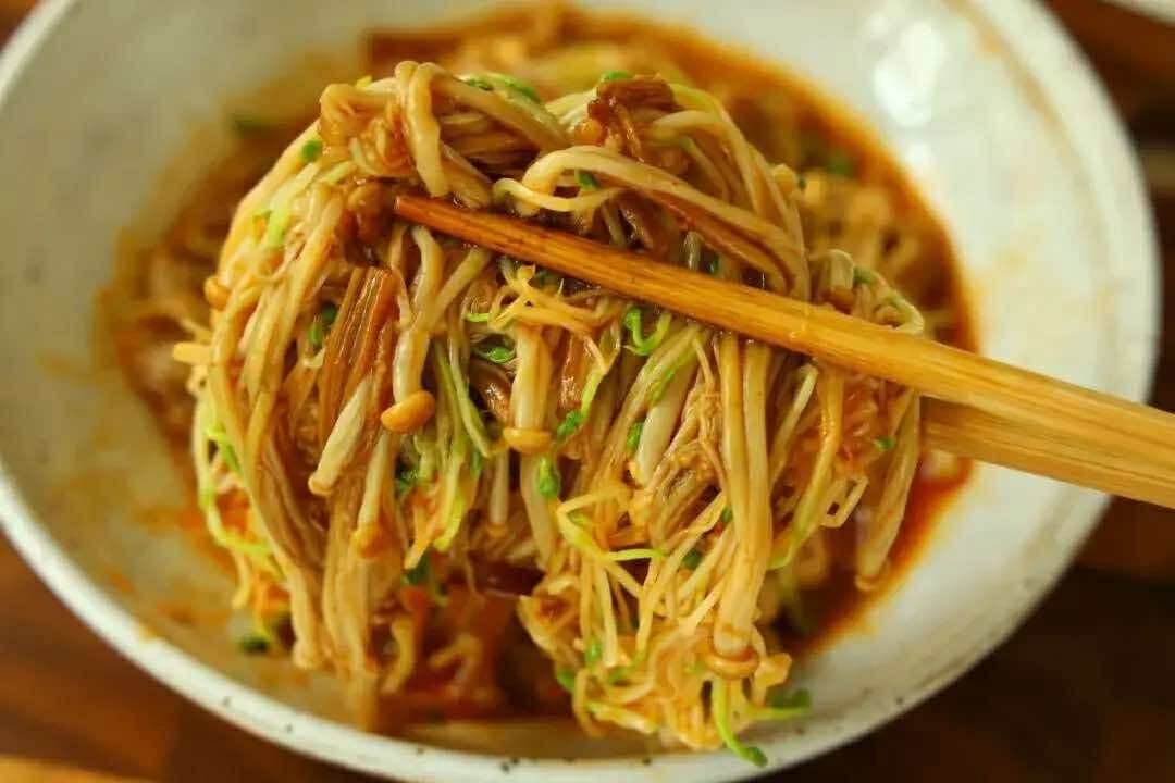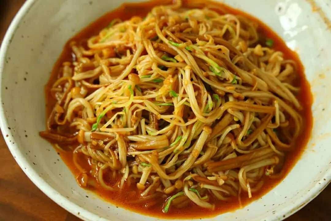 Món rau mầm đậu xanh trộn nấm kim châm này làm vừa dễ lại ngon miệng! Hương vị tươi mát và giòn của rau mầm cùng nấm kim châm kết hợp với nước sốt thơm ngon và đậm đà khiến cho cái nóng mùa hè dường như được xoa dịu ngay lập tức. Điều tuyệt vời nhất là nước sốt dùng cho món ăn này chính là “vũ khí bí mật” khiến cho món ăn dù dùng nguyên liệu đơn giản được nâng tầm hương vị. Sự kết hợp vàng tươi mát và bổ dưỡng này chắc chắn là “ngôi sao thắp sáng” bàn ăn mùa hè.