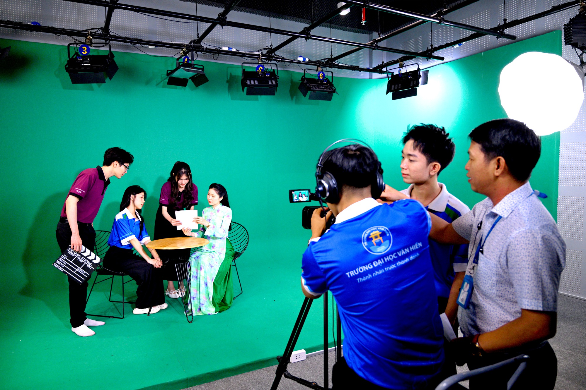 Sinh viên ngành Truyền thông đa phương tiện trong giờ học thực tế tại studio của trường