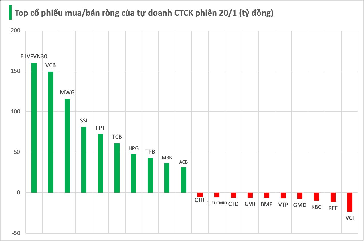 Tự doanh CTCK tung hơn 700 tỷ đồng “gom hàng” trong phiên 20/1, cổ phiếu nào được mua mạnh nhất?