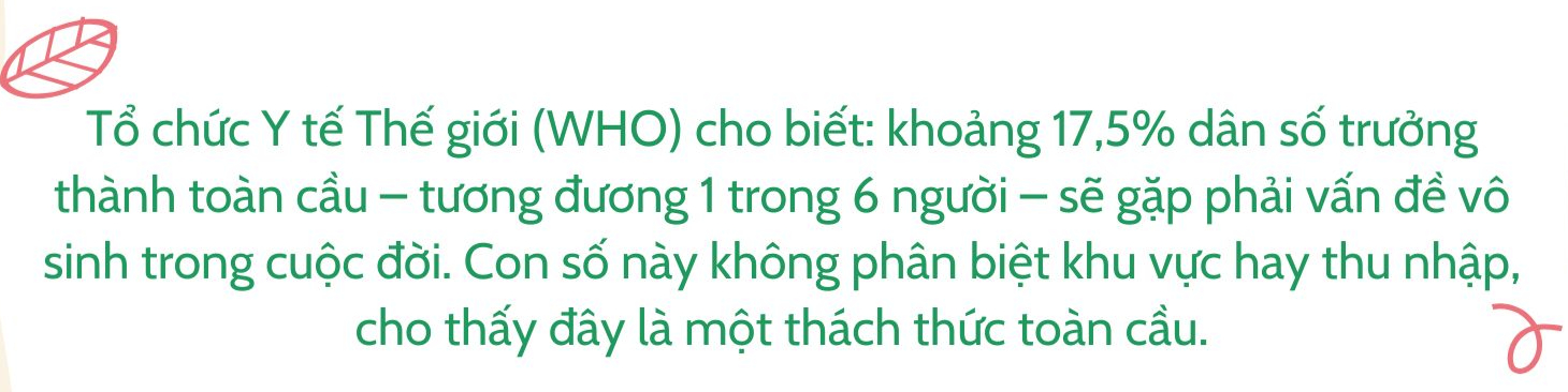 Tại Việt Nam, tình trạng này cũng không là ngoại lệ. Theo Bộ Y tế, tỷ lệ vô sinh hiện ở mức 7,7%, với khoảng 1 triệu cặp vợ chồng gặp khó khăn trong việc có con mỗi năm. Đáng chú ý, 50% trong số đó là người dưới 30 tuổi. Tỷ lệ sinh tổng hợp giảm liên tiếp dưới mức thay thế: 1,96 con/phụ nữ (2023) xuống còn 1,91 (2024) – phản ánh rõ sự suy giảm nghiêm trọng về khả năng sinh sản.
