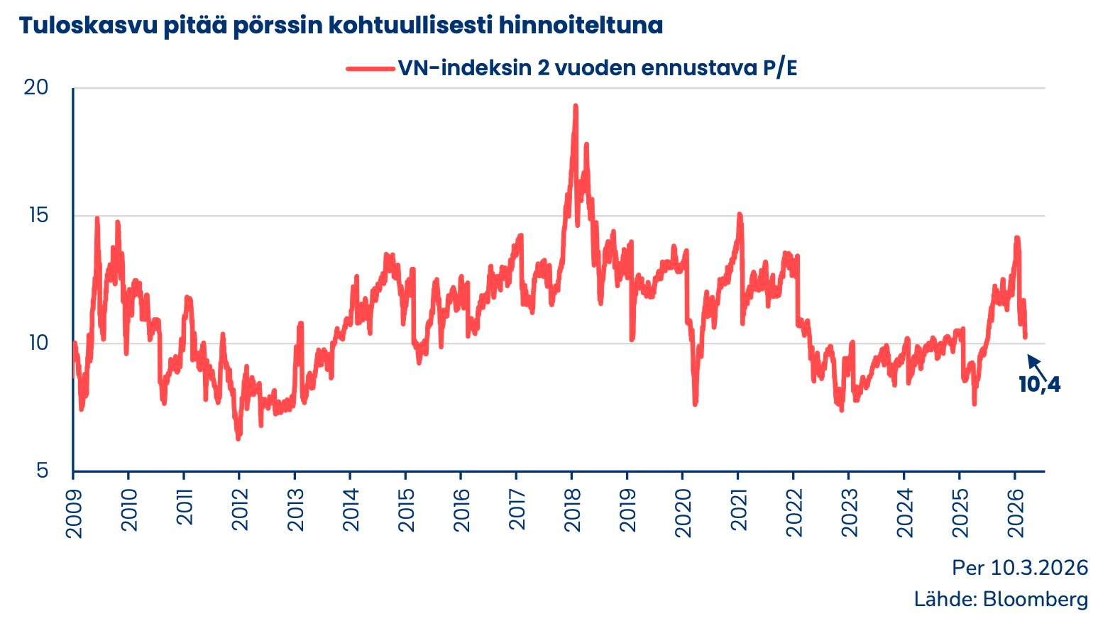 Trong thư gửi nhà đầu tư hồi giữa tháng 3, ông Petri Deryng – người đứng đầu Pyn Elite Fund cho rằng định giá thị trường chứng khoán Việt Nam đang ở mức thấp với hệ số P/E của VN-Index dự phóng vào năm 2027 là 10,4. Ông cũng bày tỏ sự tin tưởng vào tăng trưởng lợi nhuận của các công ty niêm yết, khi các dự án cơ sở hạ tầng nhà nước kích thích nhu cầu trong nước và đẩy nhanh đầu tư của khu vực tư nhân.