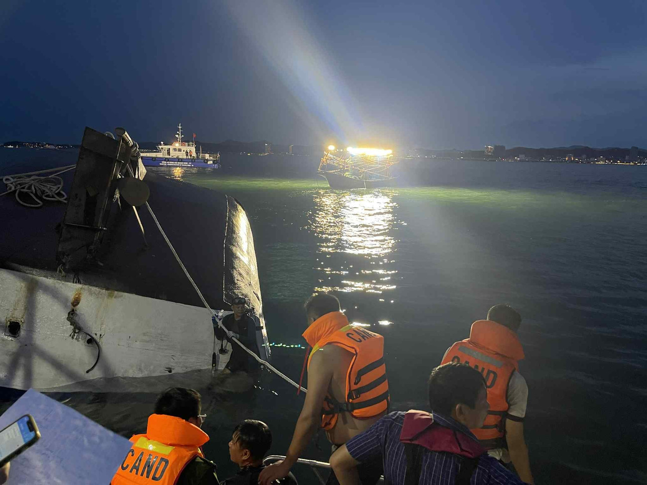 Đội thợ lặn của Phòng cháy chữa cháy, Công an tỉnh Quảng Ninh cũng được tăng cường ra điểm tàu đắm để tìm kiếm xuyên đêm.