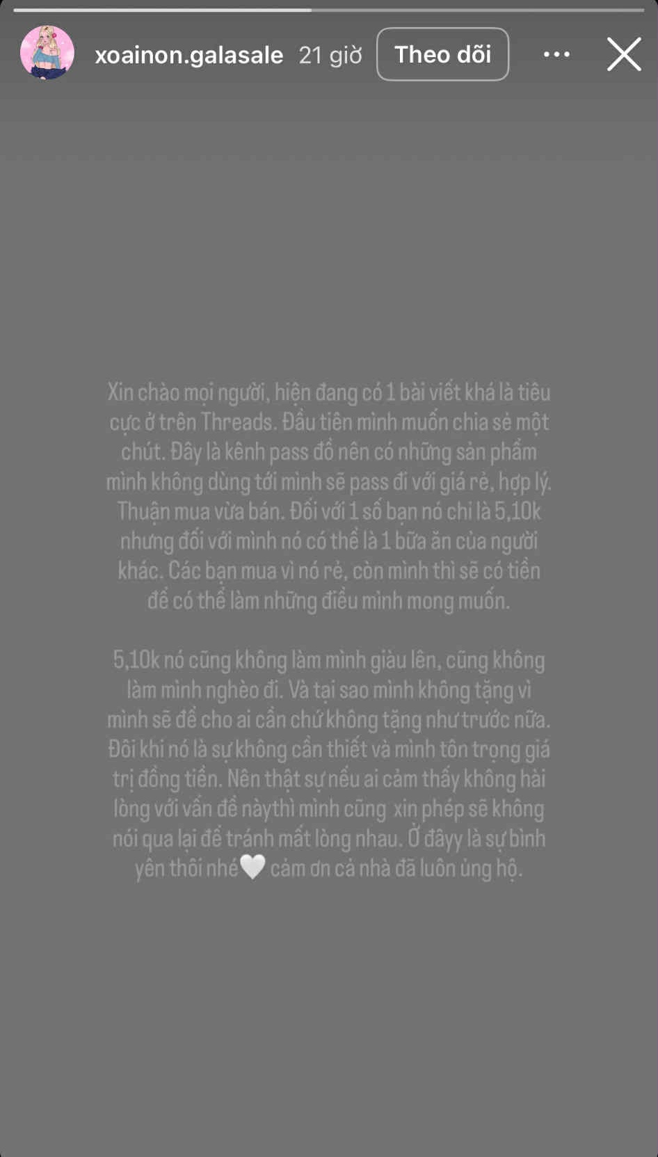 Story lên tiếng trên kênh pass đồ của Xoài Non